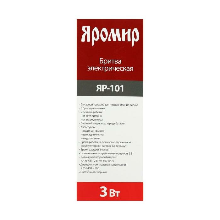 Бритва электрическая яромир ЯР-101 синий с черным: 3 Вт