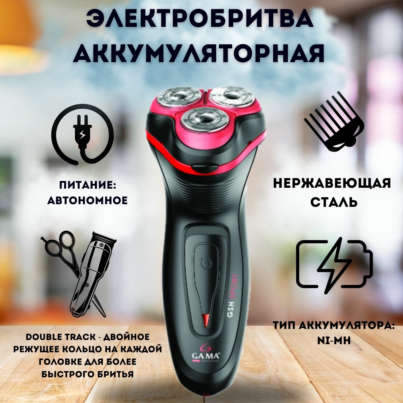 Электробритва Ga.ma GSH Sport (GM0604)Источник питания От аккумулятора, Назначение Бритва, Бреющая с