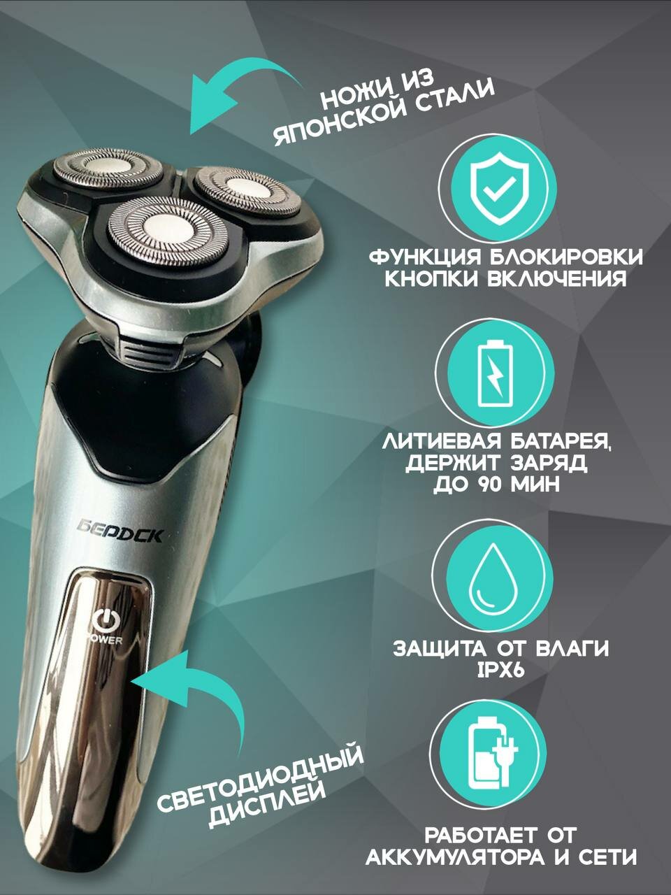 Электробритва бердск 3316АС роторная, голубой интересное: