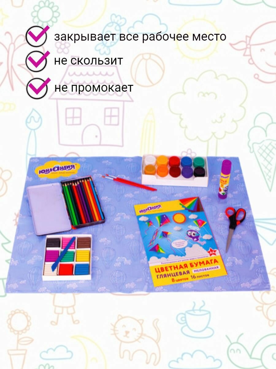 Клеёнка настольная для занятий творчеством, 50 x 70 см, Юнландия "Воздушный шар", ПВХ