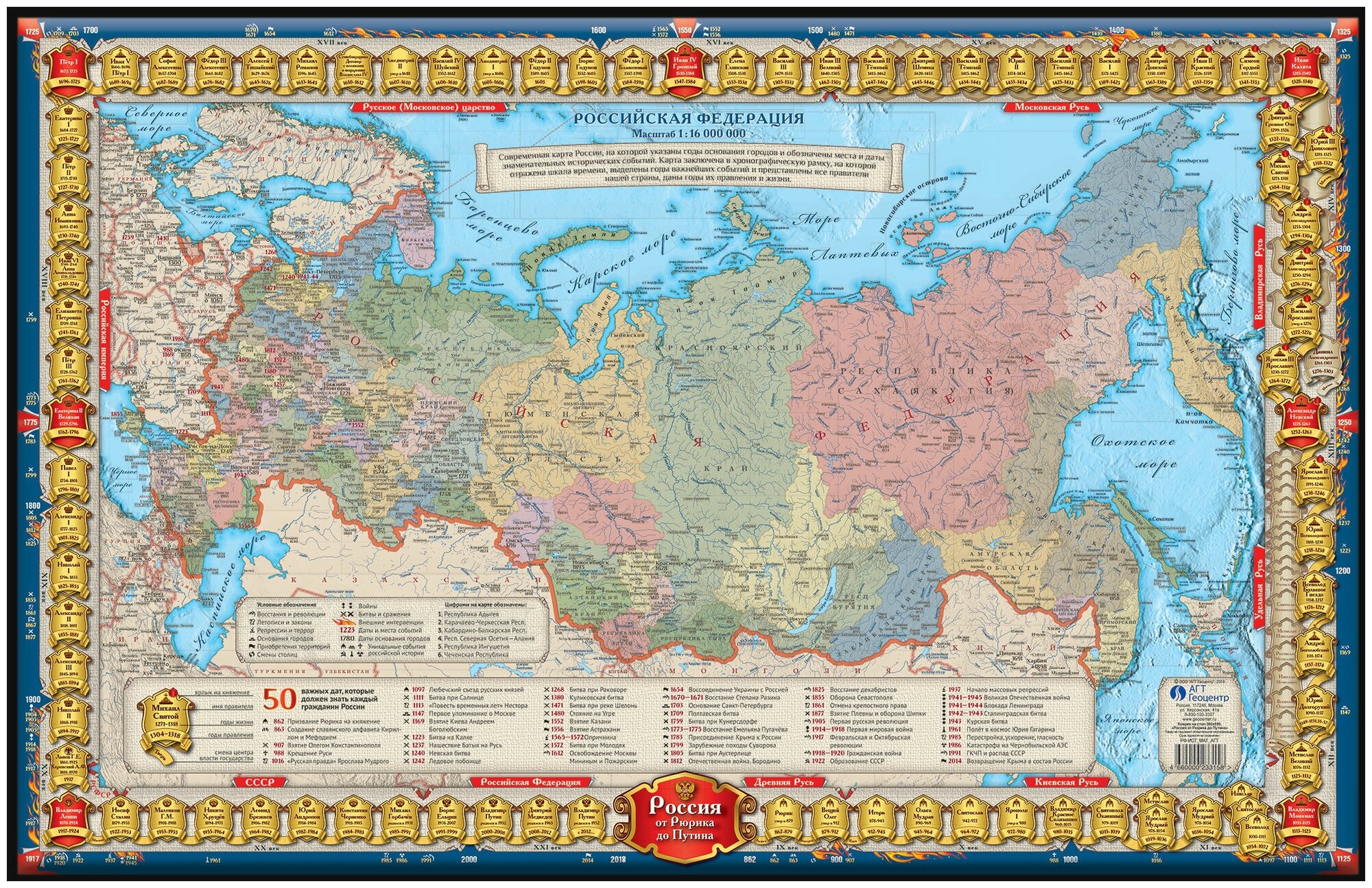 Подкладка (мат) на рабочий стол для письма с исторической картой России, размер 59х38 см, "АГТ Геоцентр" интересное:
