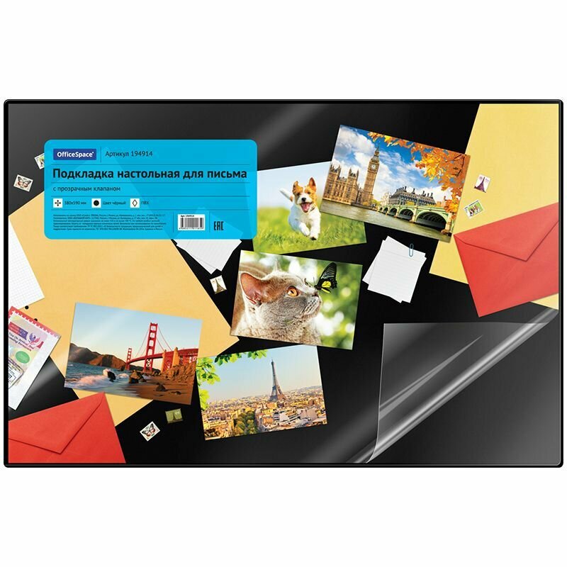 Настольное покрытие OfficeSpace, 38*59см, черное, с прозрачным клапаном, 194914