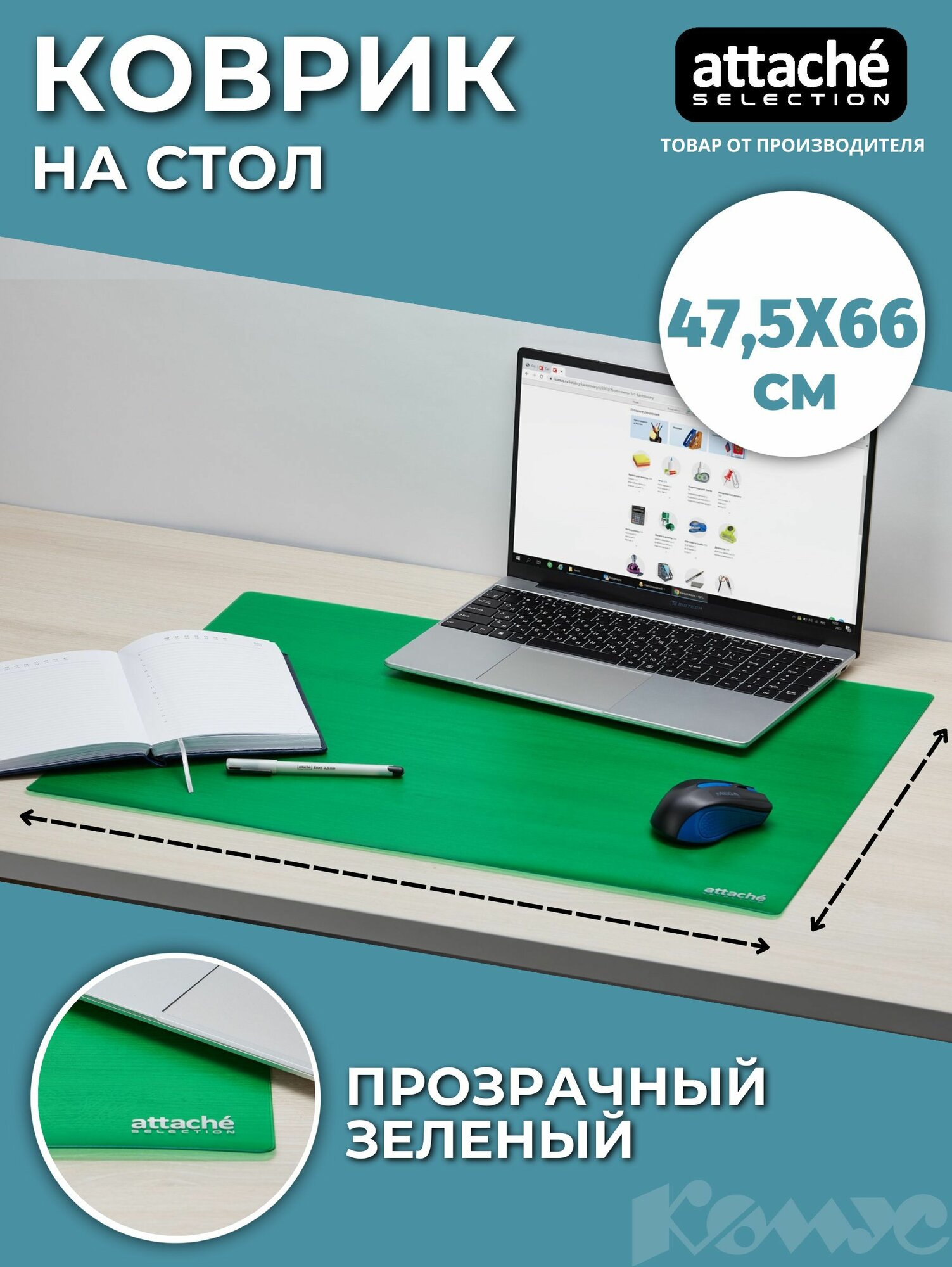 Настольное покрытие Коврик на стол Attache Selection 47,5x66см, прозрачный зеленый, 2808-508