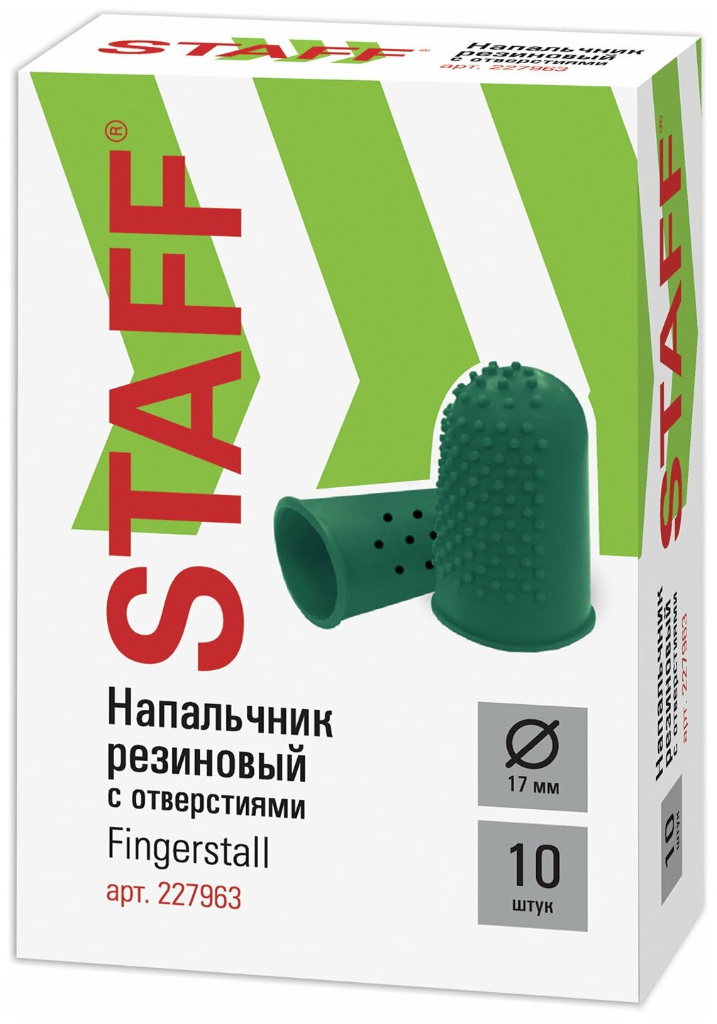 Напальчники резиновые с отверстиями, комплект 10 шт., диаметр 17 мм, зеленые, STAFF "EVERYDAY", 227963 - 1 шт.