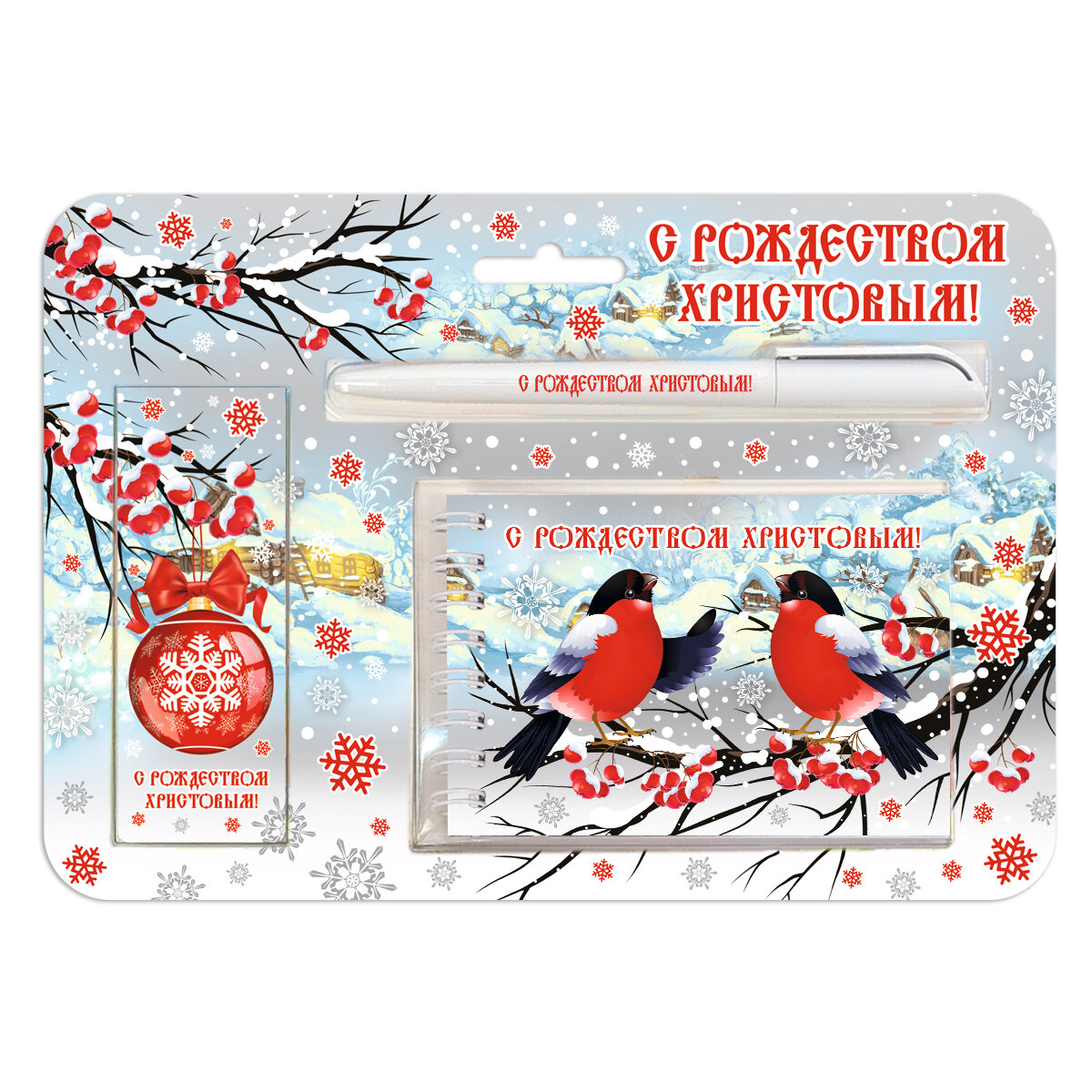 Купить Блокнот, закладка для книги и ручка "Рождество Христово "Снегири"