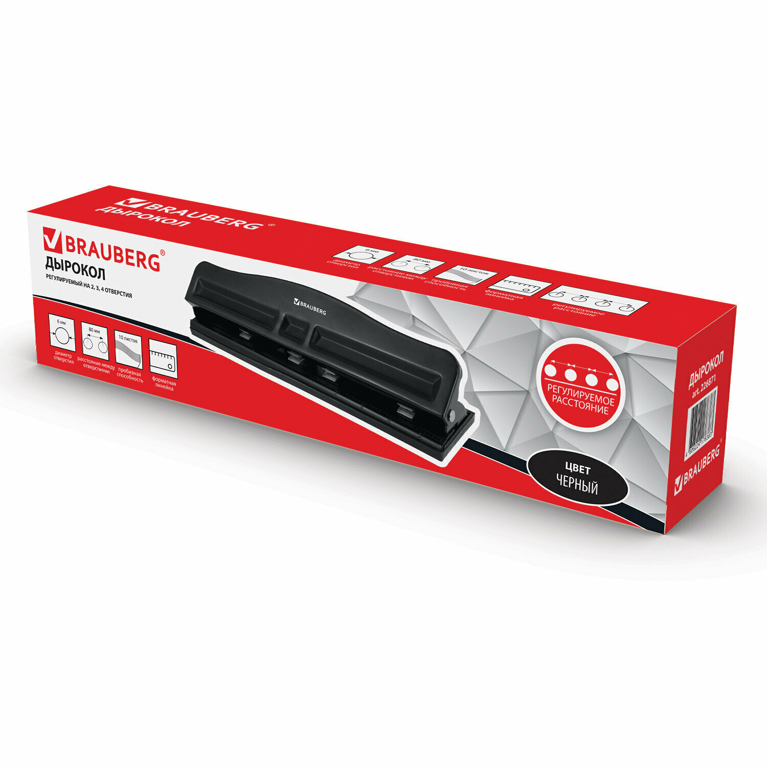 Дырокол на 2-4 отверстия BRAUBERG "Mobil", на 10 листов, металлический, черный, 226871