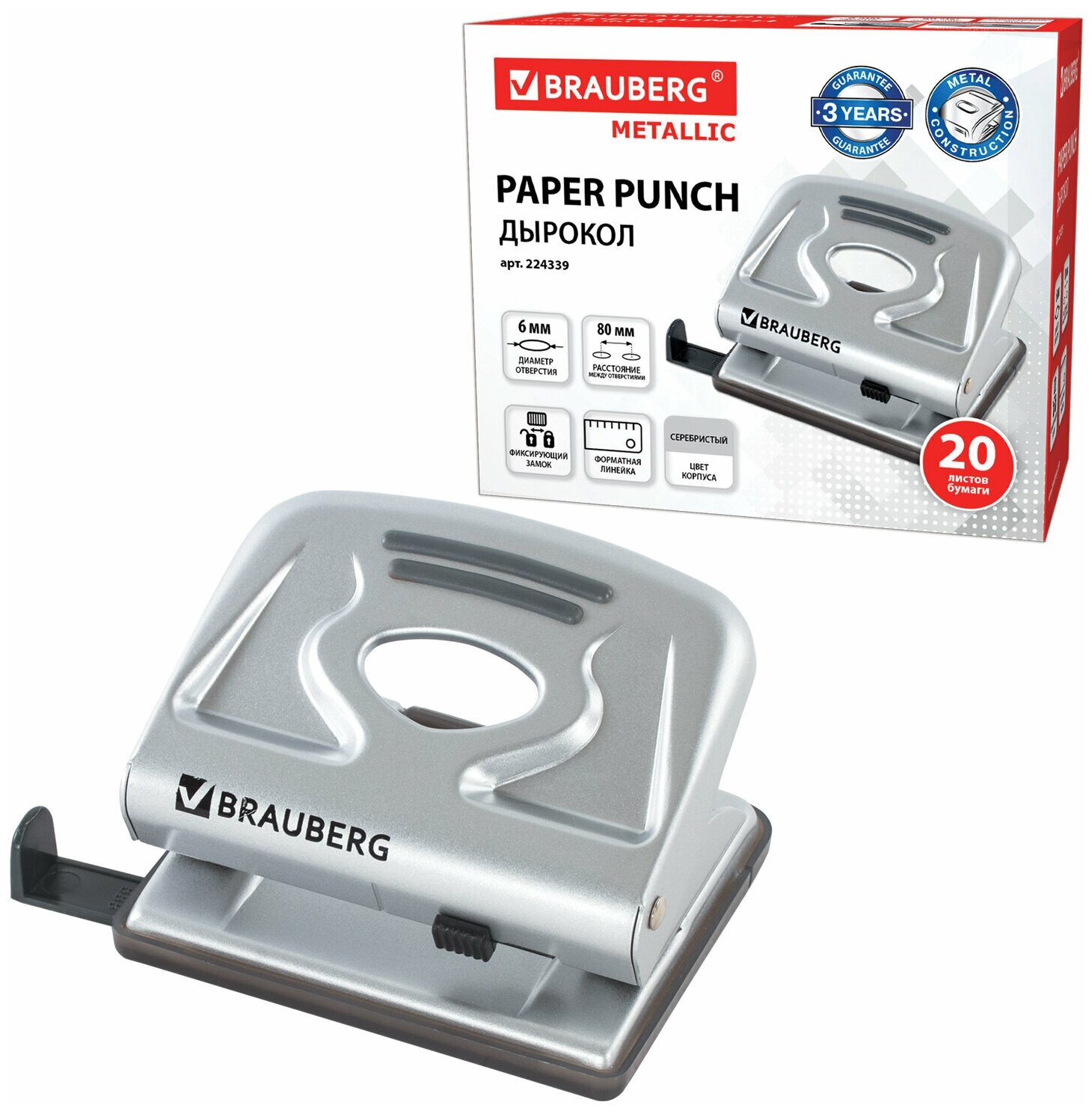 Дырокол металлический BRAUBERG "Metallic", до 40 листов, серебристый, 224342 - 1 шт.