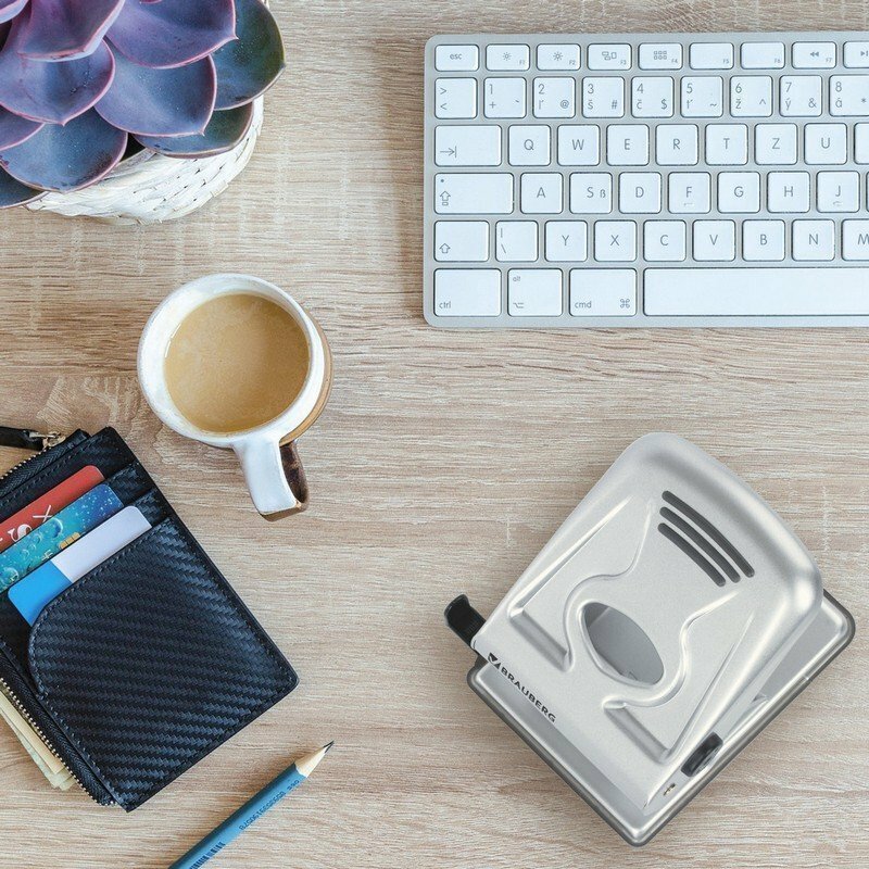 Дырокол металлический BRAUBERG "Metallic", до 40 листов, серебристый, 224342 - 1 шт.