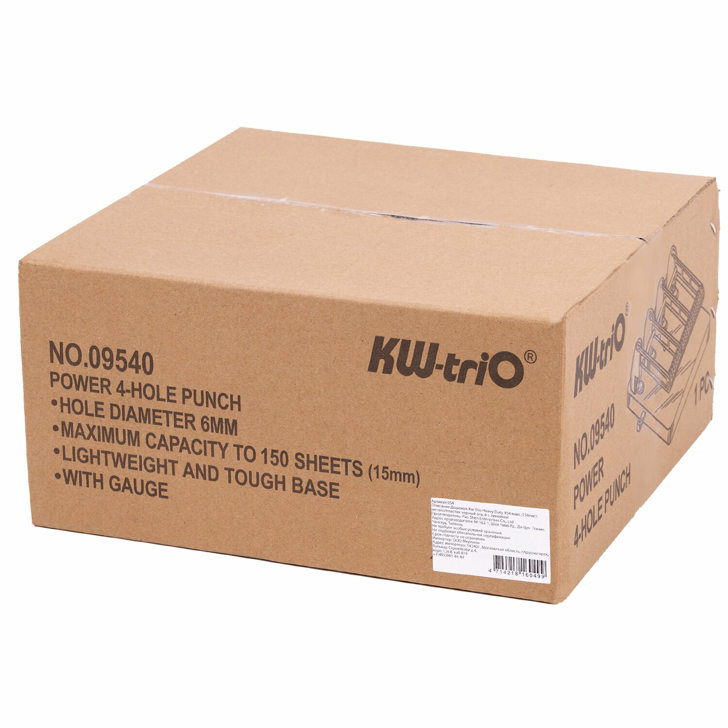 Дырокол мощный KW-Trio 954 (до 150 листов, 4 отверстия) металл/пластик, черный (KW-TRIO 954)