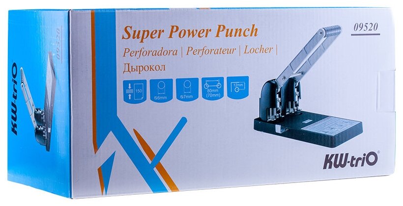 Дырокол KW-Trio супермощный, 2 отверстия, до 150 листов (952)