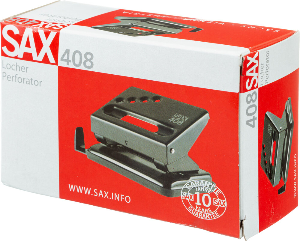 Дырокол Sax 408, до 30 листов, красный линейка