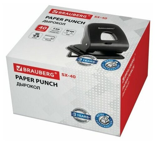 Дырокол BRAUBERG "SX-40", до 40 листов, черный, 229695 интересное:
