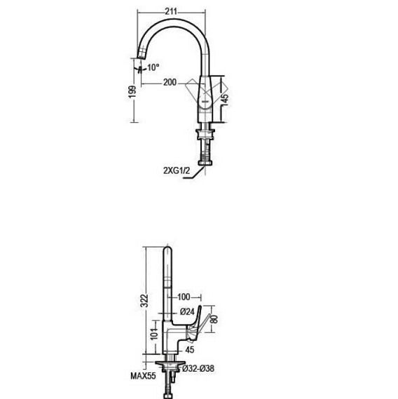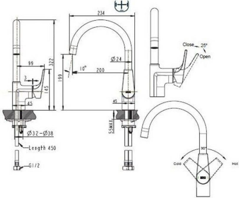| Длина излива | 200 мм |