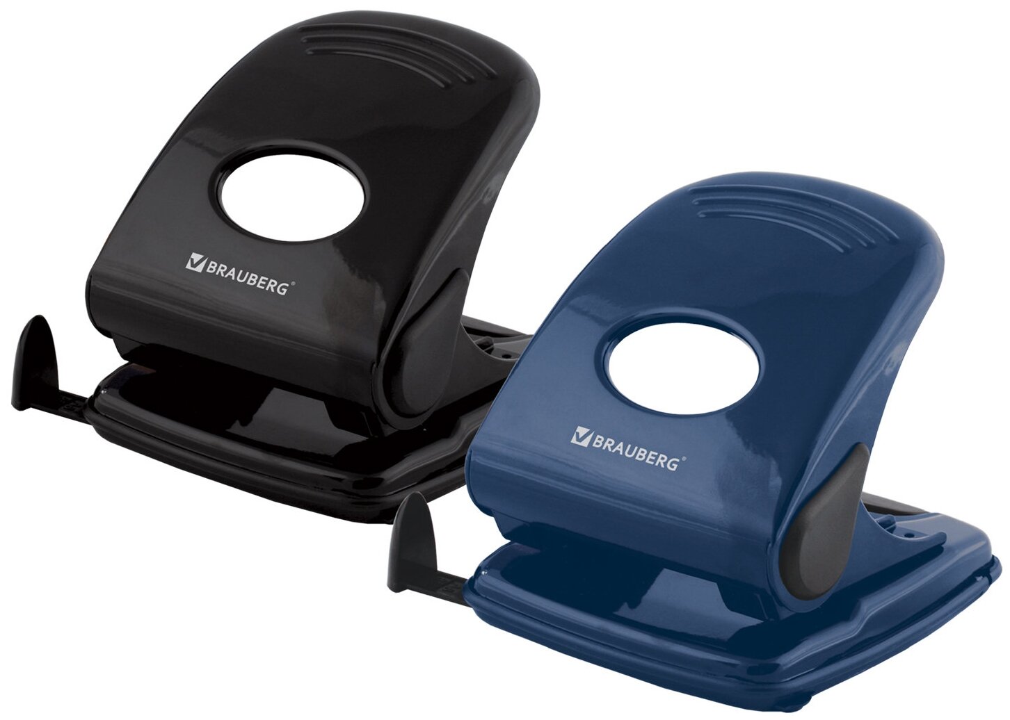 Дырокол металлический BRAUBERG Style, до 40 листов, ассорти (синий/черный), 220947