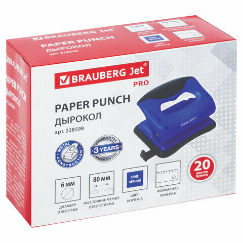 Дырокол BRAUBERG "JET PRO", до 20 листов, сине-черный, 228598 В комплекте: 1шт.
