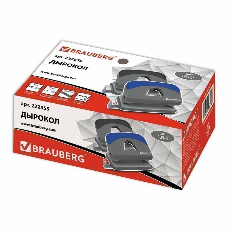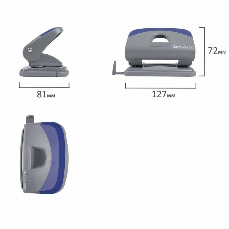 Дырокол BRAUBERG (брауберг) "Quantis", средний, на 20 листов, темно-серый, вставка ассорти (синий, черный) интересное: