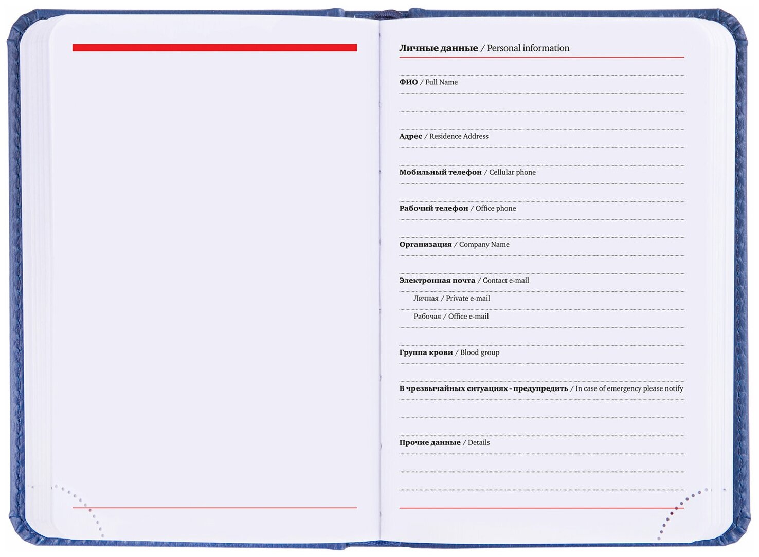 | Особенности | перфорация уголков / справочная информация / ляссе / прошивка по периметру обложки / закругленные углы |