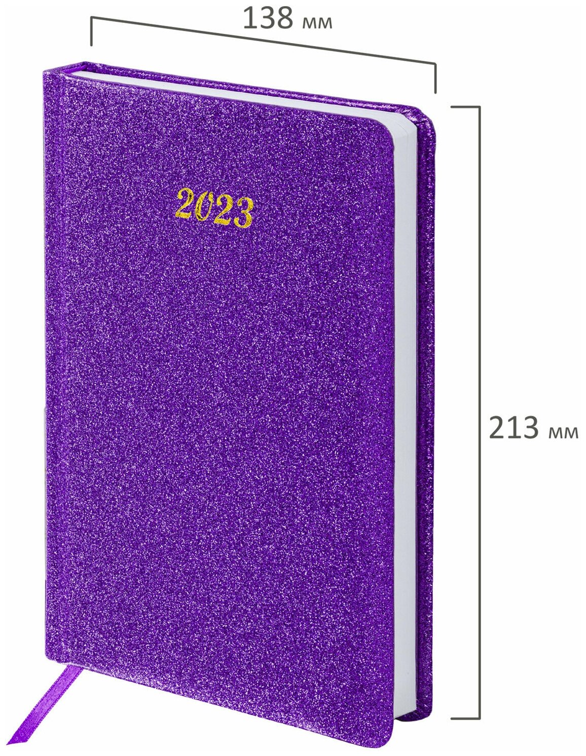 Ежедневник датированный BRAUBERG 2023 А5 138x213 мм "Sparkle", под кожу, блестки, фиолетовый, 114112