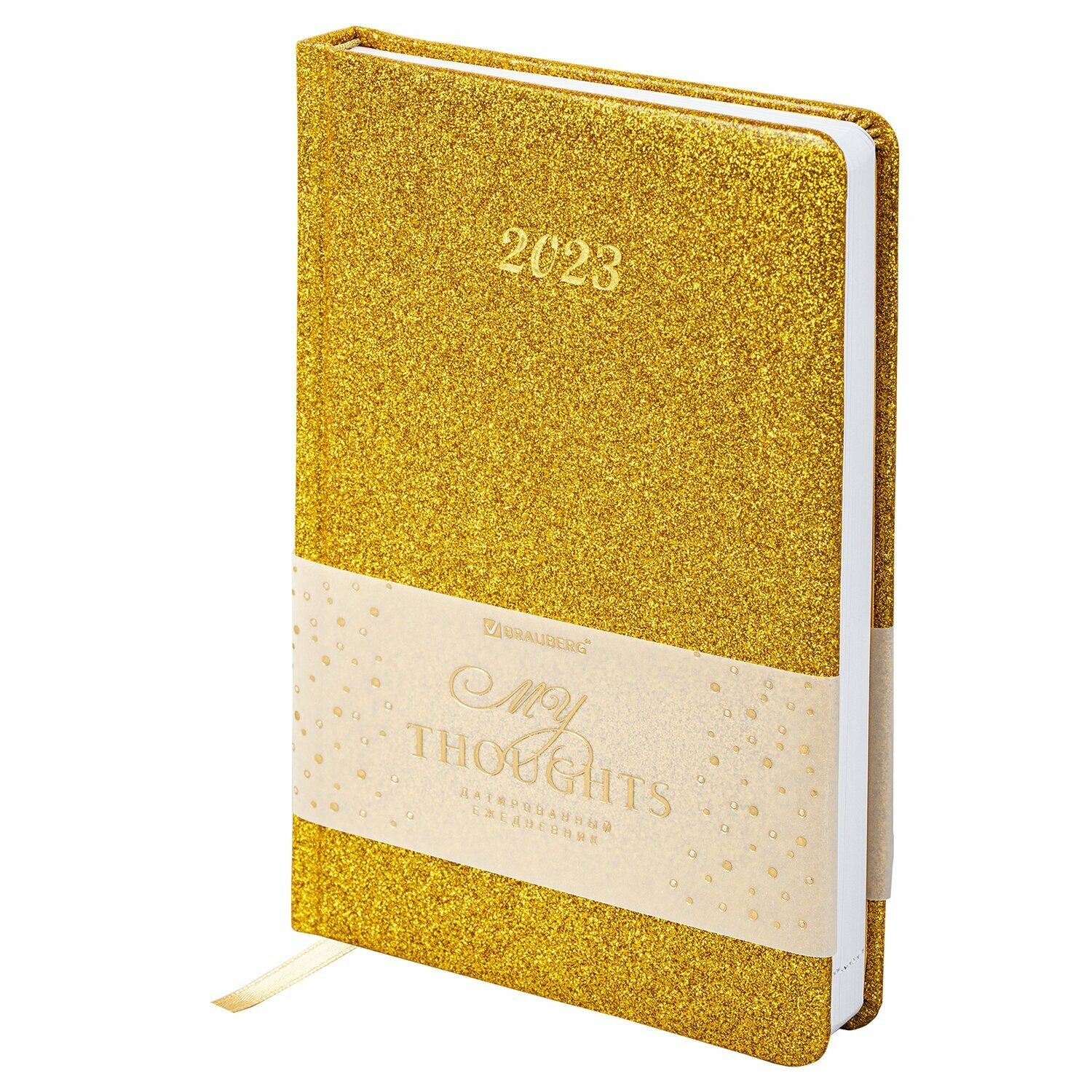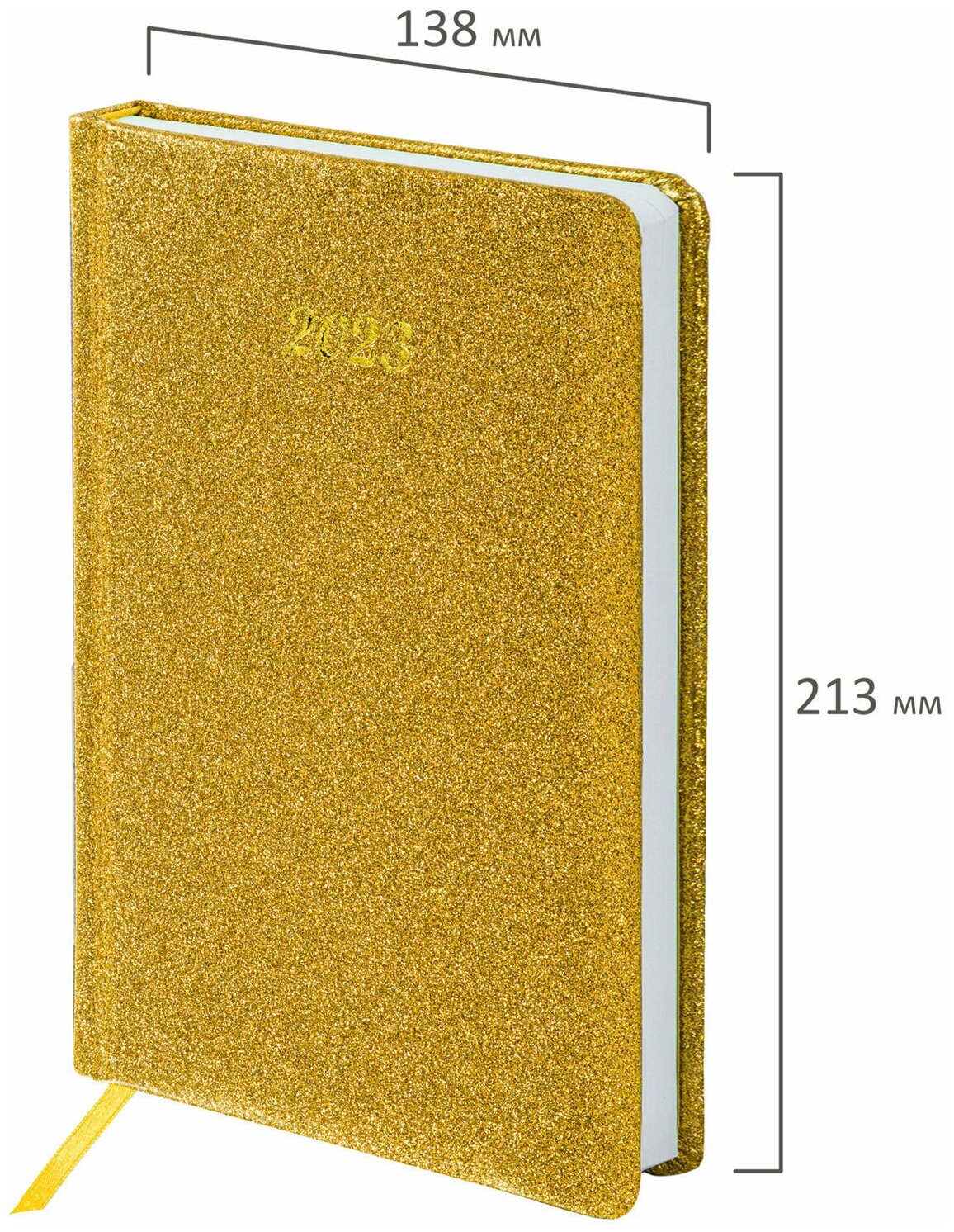 Ежедневник датированный Brauberg 2023 г, А5 138x213 мм "Sparkle", блестки, золотистый (114110)