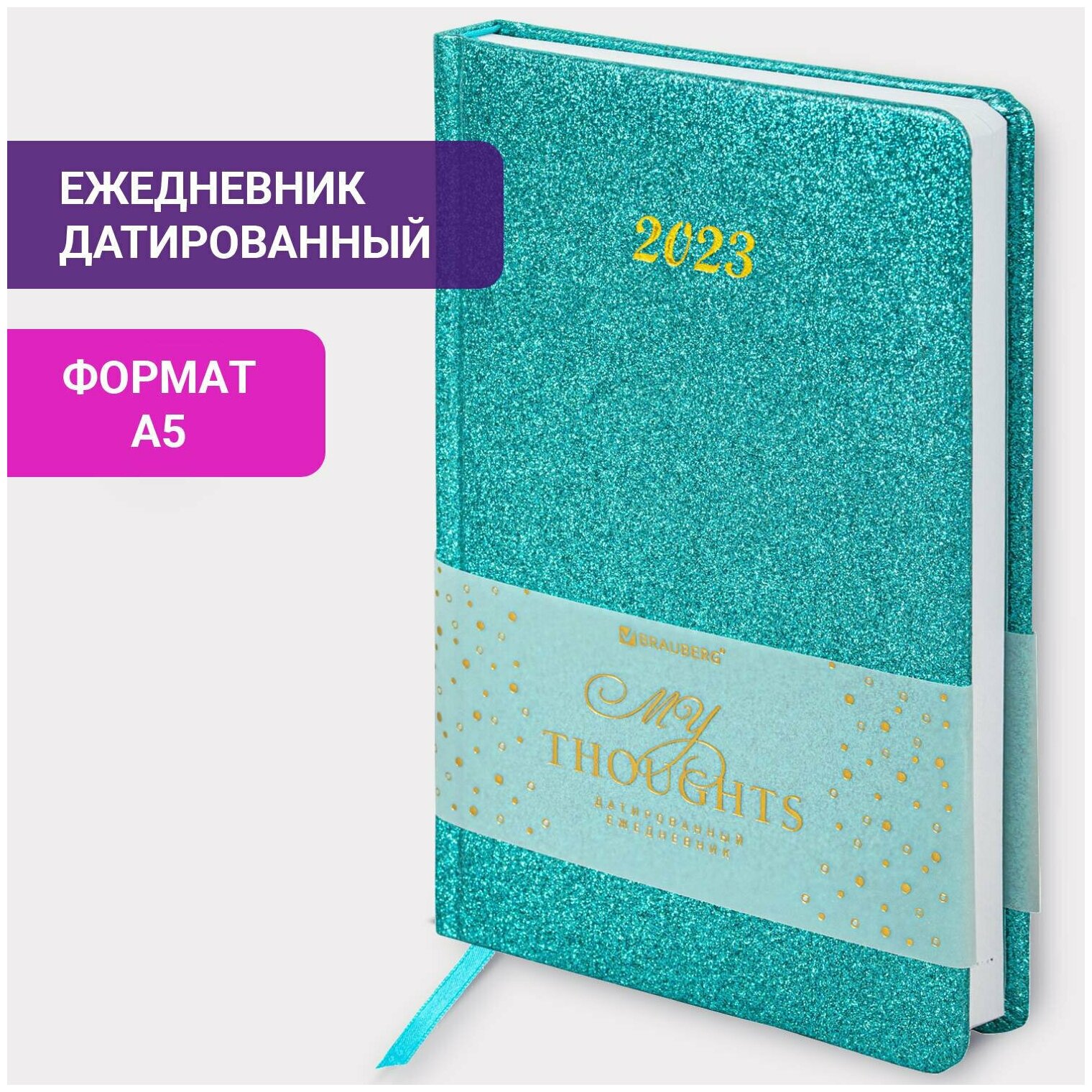 Ежедневник датированный Brauberg 2023 А5 138x213 мм Sparkle, под кожу, блестки, бирюзовый (114111)
