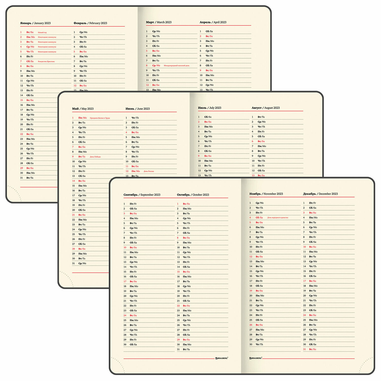 | Особенности | календарь / перфорация уголков / справочная информация / ляссе / закругленные углы |