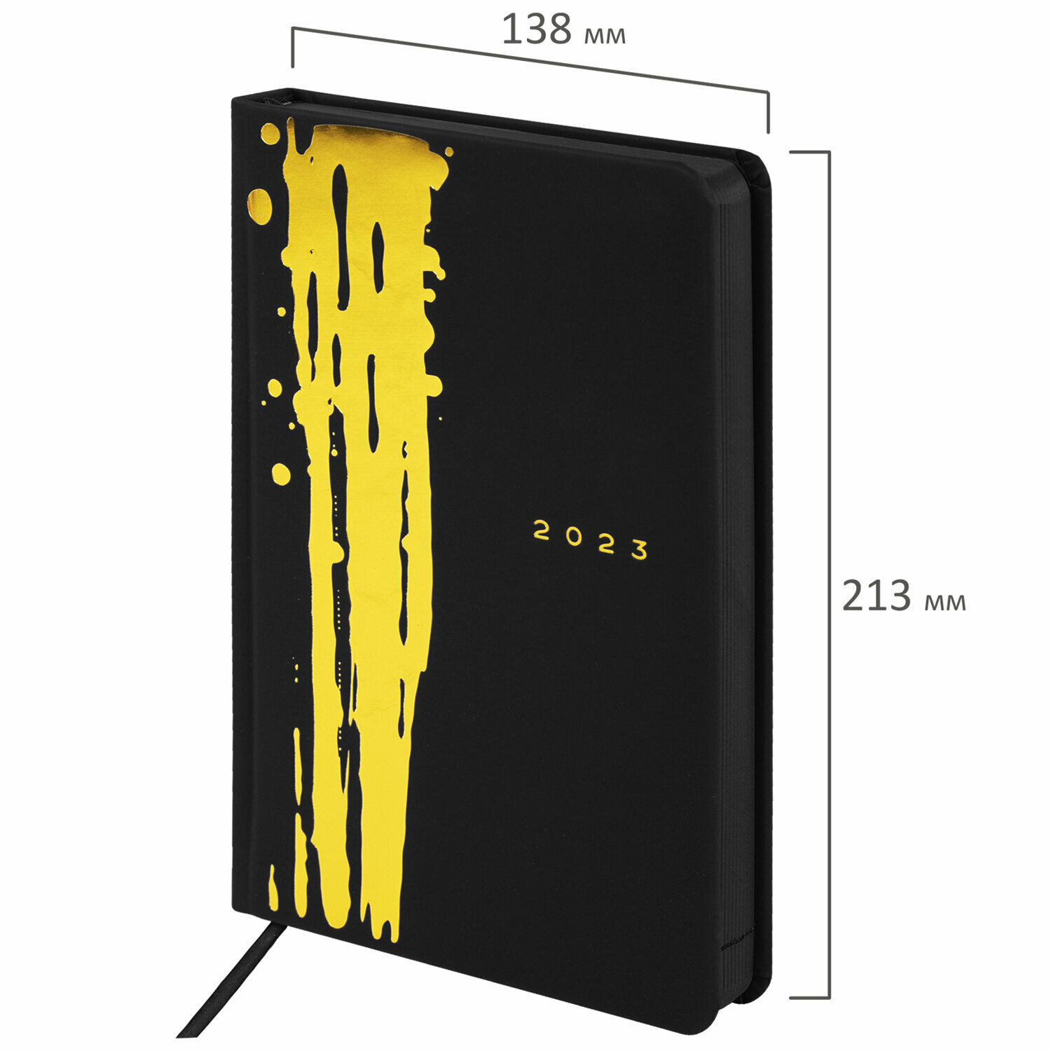 Купить Ежедневник датированный 2023 А5 138x213 мм BRAUBERG "Goldy", цветной срез, черный, 114157