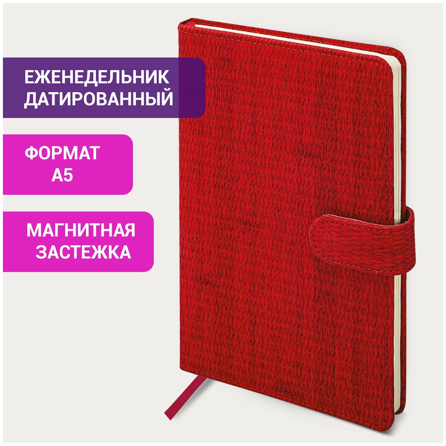 Купить Еженедельник-планер (планинг) / записная книжка / блокнот датированный 2023 год А5 145х215мм Brauberg Instinct, под кожу, красный
