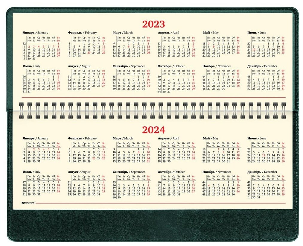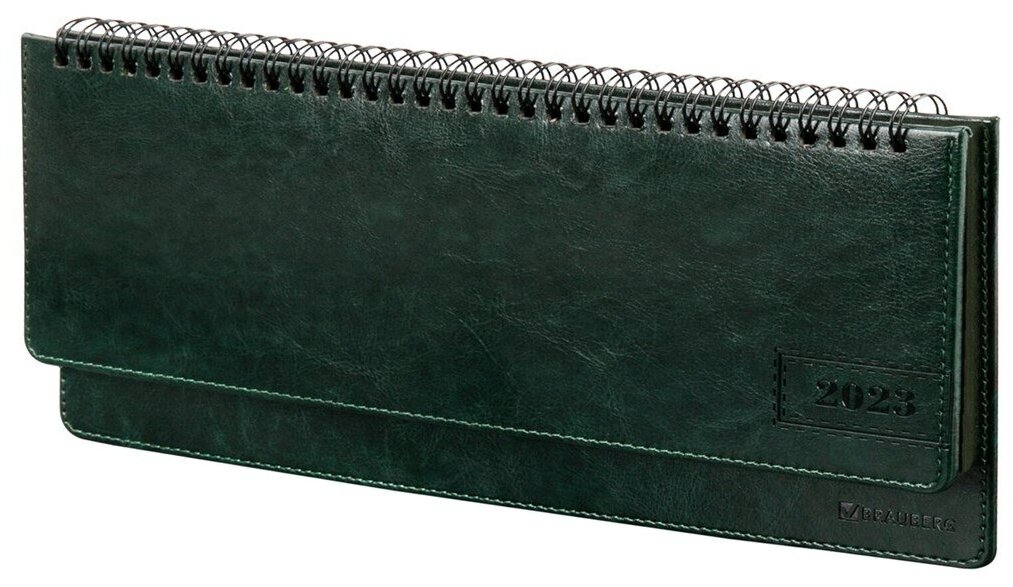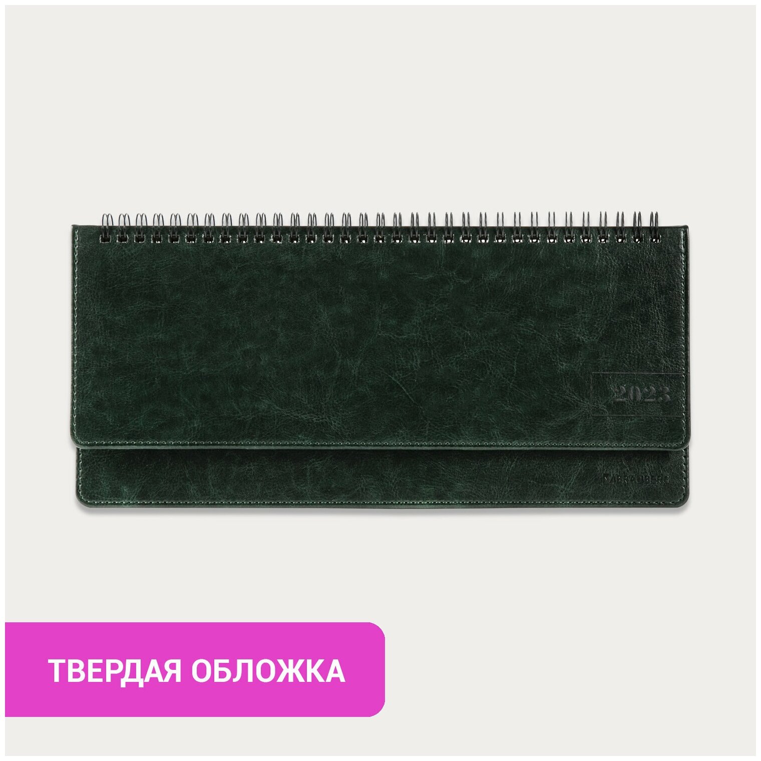 Купить Планинг (ежедневник-планер) датированный настольный горизонтального формата на 2023 год формата 305х140 мм Brauberg Imperial, под кожу, зеленый