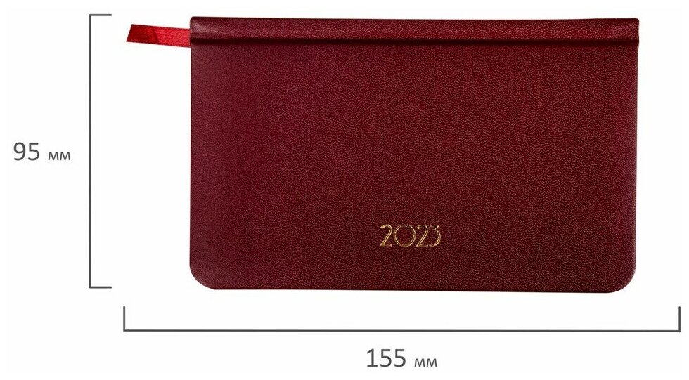 Купить Еженедельник датированный 2023 малый формат 95х155 мм А6, BRAUBERG "Select", балакрон, красный
