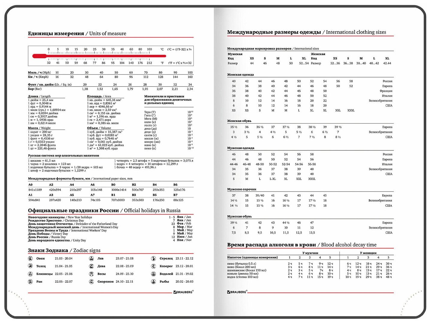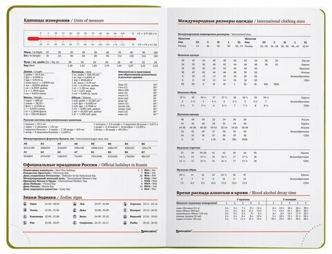 | Особенности | календарь / перфорация уголков / справочная информация / ляссе / закругленные углы |