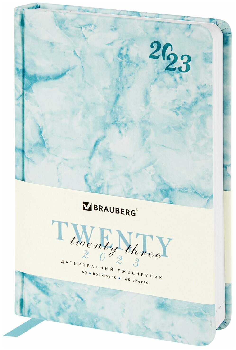 Ежедневник датированный BRAUBERG 2023 А5 138x213 мм "Marble", под кожу, бирюзовый, 114020