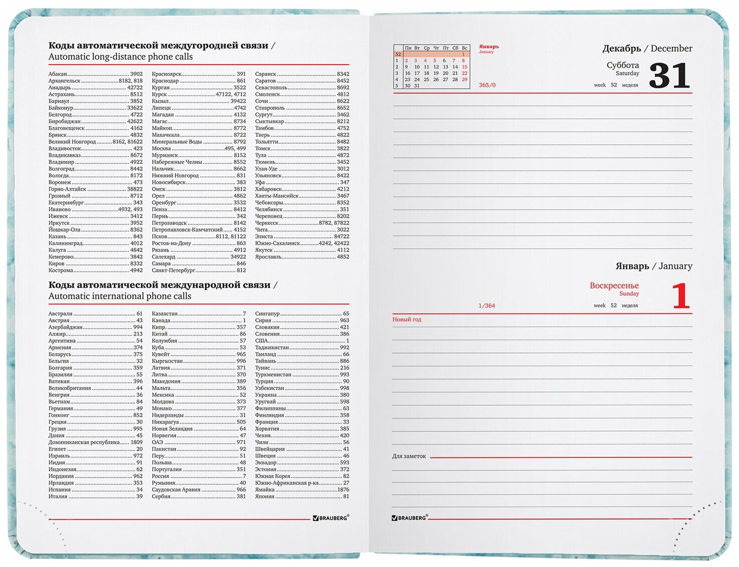 Ежедневник-планер (планинг) / записная книжка / блокнот датированный на 2023 год формата А5 (138x213 мм) Brauberg Marble, под кожу, бирюзовый