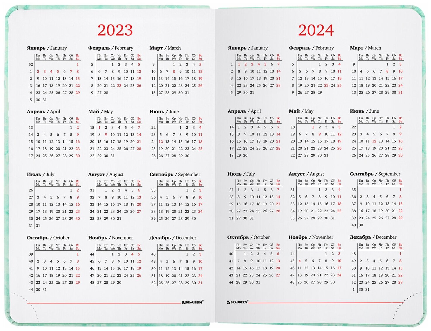 Ежедневник-планер (планинг) / записная книжка / блокнот датированный на 2023 год формата А5 (138x213 мм) Brauberg Marble, под кожу, бирюзовый