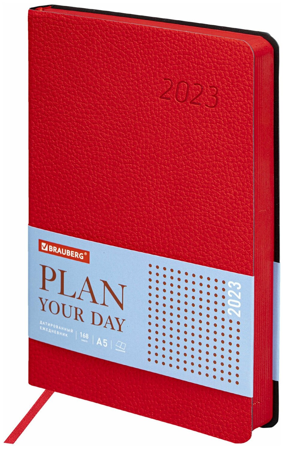Купить Ежедневник-планер (планинг) / записная книжка / блокнот датированный на 2023 год формата А5 (138x213 мм) Brauberg Stylish, под кожу, красный