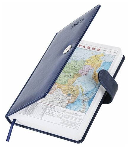 Ежедневник датированный BRAUBERG 2023 А5 138x213 мм "Legend", под кожу, синий, 114040