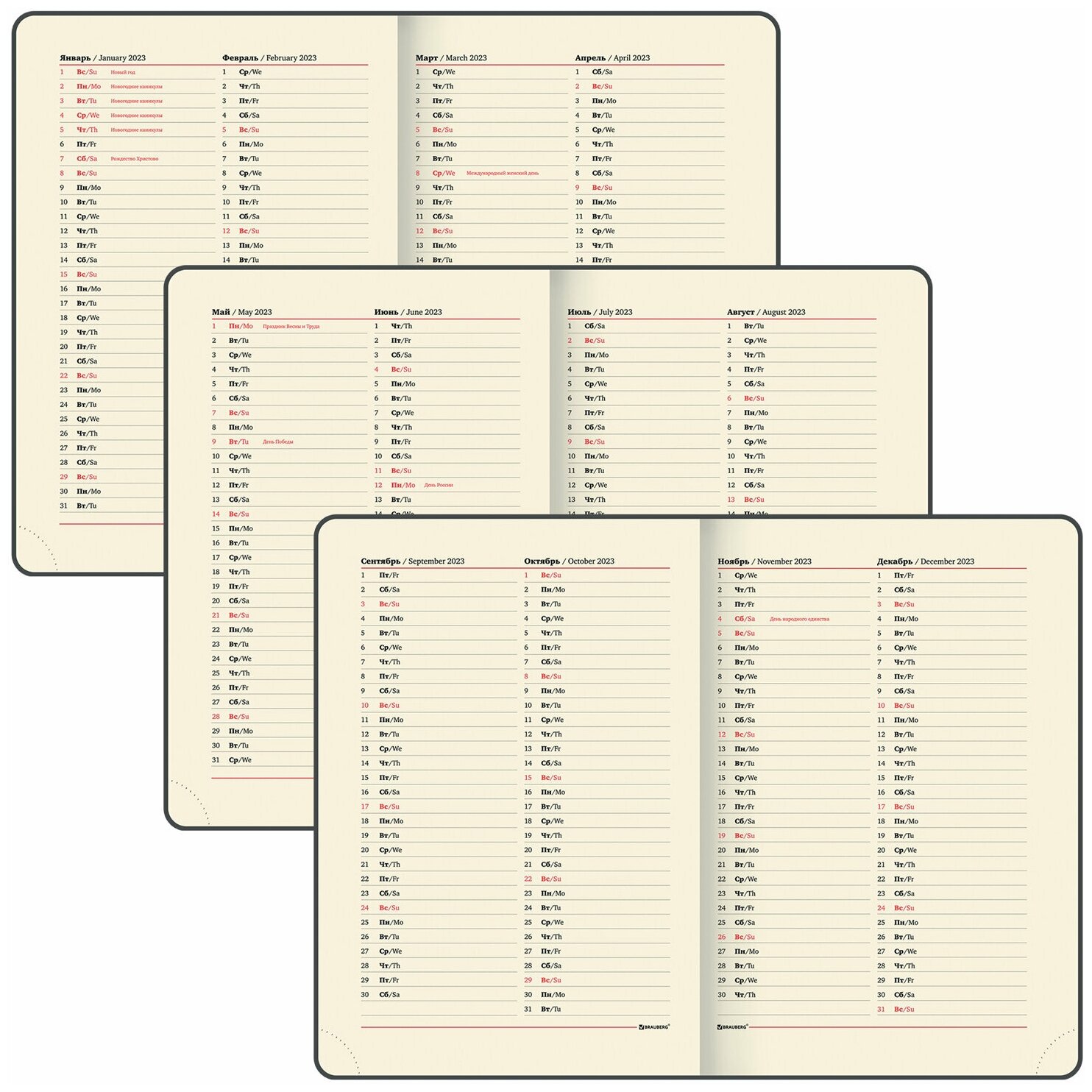 | Особенности | календарь / перфорация уголков / справочная информация / ляссе / закругленные углы |