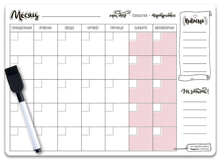 Happy Line Планер магнитный с маркером "На месяц" 29 х 42 см