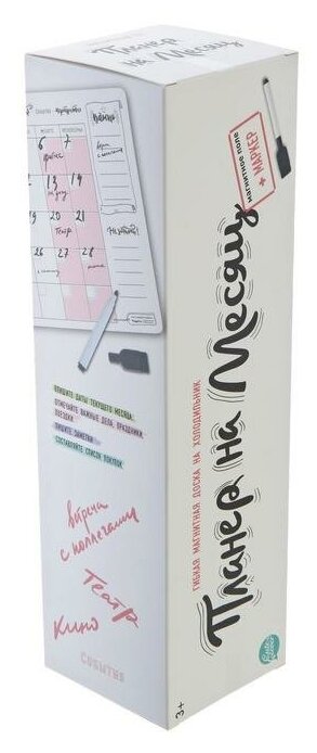 | Отзыв: | Очень удобный планер, есть и окошки для дат, и место для важных дел, больше всего порадовала цена, потому что подобные вещи стоят от 1000 в других магазинах. Планер клеится на холодильник, единственное, не хватает ещё пары цветов маркеров. |