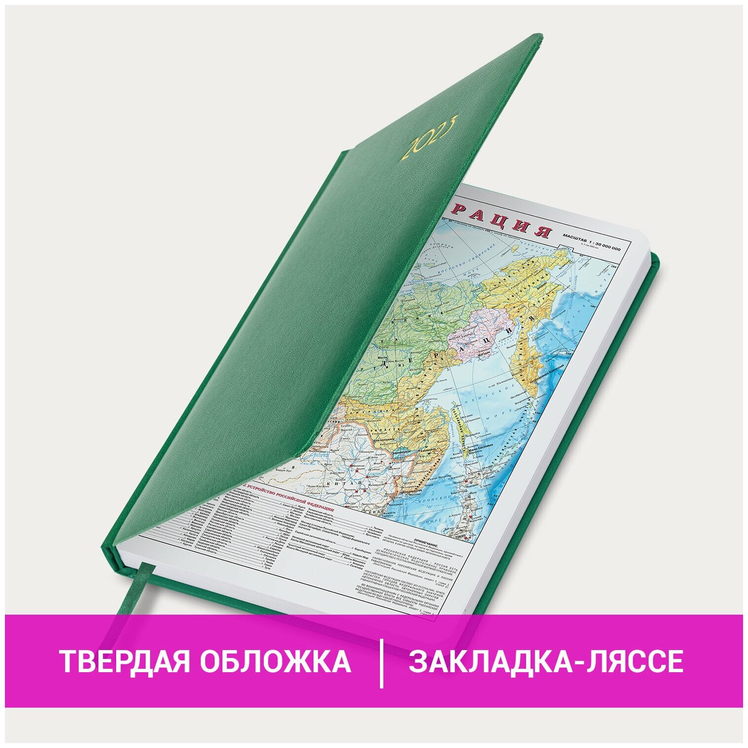 Ежедневник-планер (планинг) / записная книжка / блокнот датированный на 2023 год формата А5 138x213 мм Brauberg Select, балакрон, зеленый
