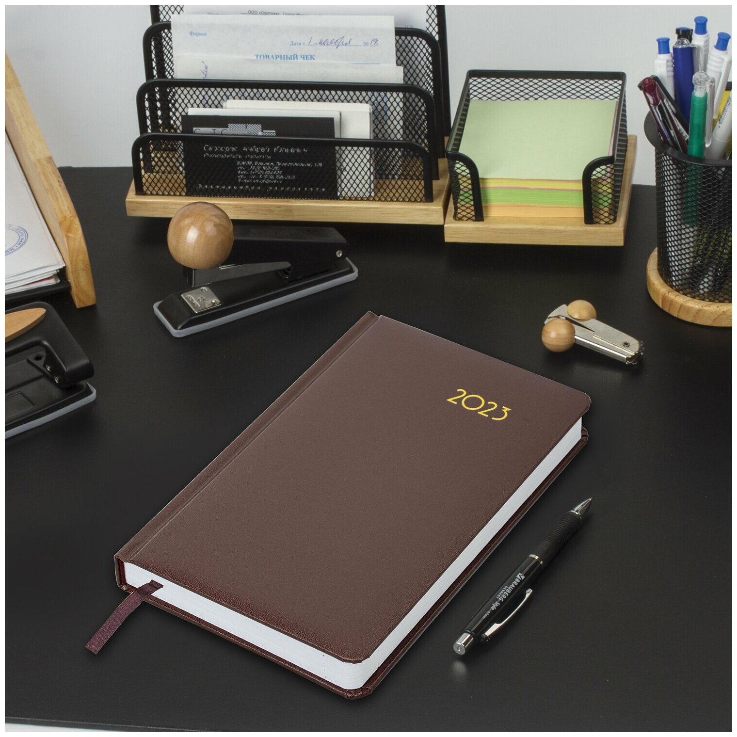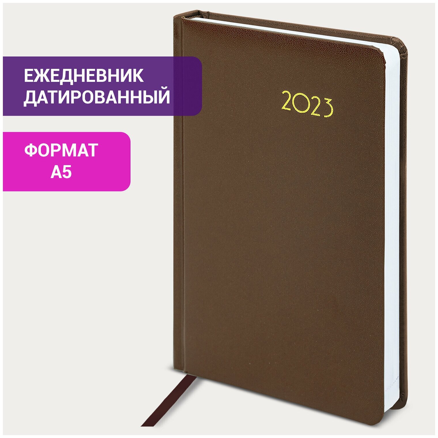 Ежедневник-планер (планинг) / записная книжка / блокнот датированный на 2023 год формата А5 138x213 мм Brauberg Select, балакрон, коричневый