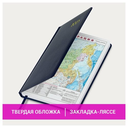 Ежедневник-планер (планинг) / записная книжка / блокнот датированный на 2023 год формата А5 138x213 мм Brauberg Select, балакрон, темно-синий