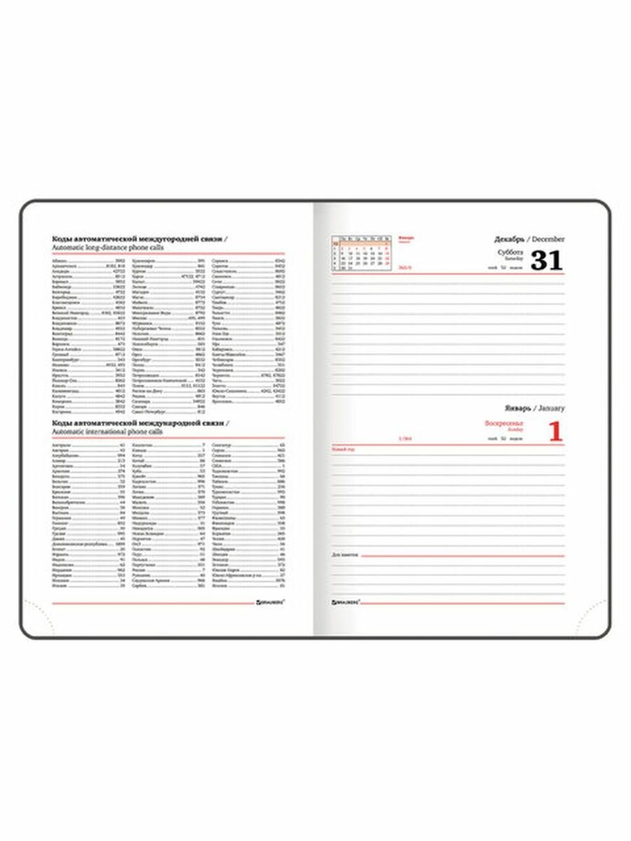| Плюсы: | Очень качественный ежедневник! Листы плотные! Удобно вести записи, есть разлиновка по датам и по времени суток! Есть закладка ленточка, что облегчает найти дату. Есть карта мира, единицы измерения, расход калорий, автомобильные коды и коды автоматической связи. |