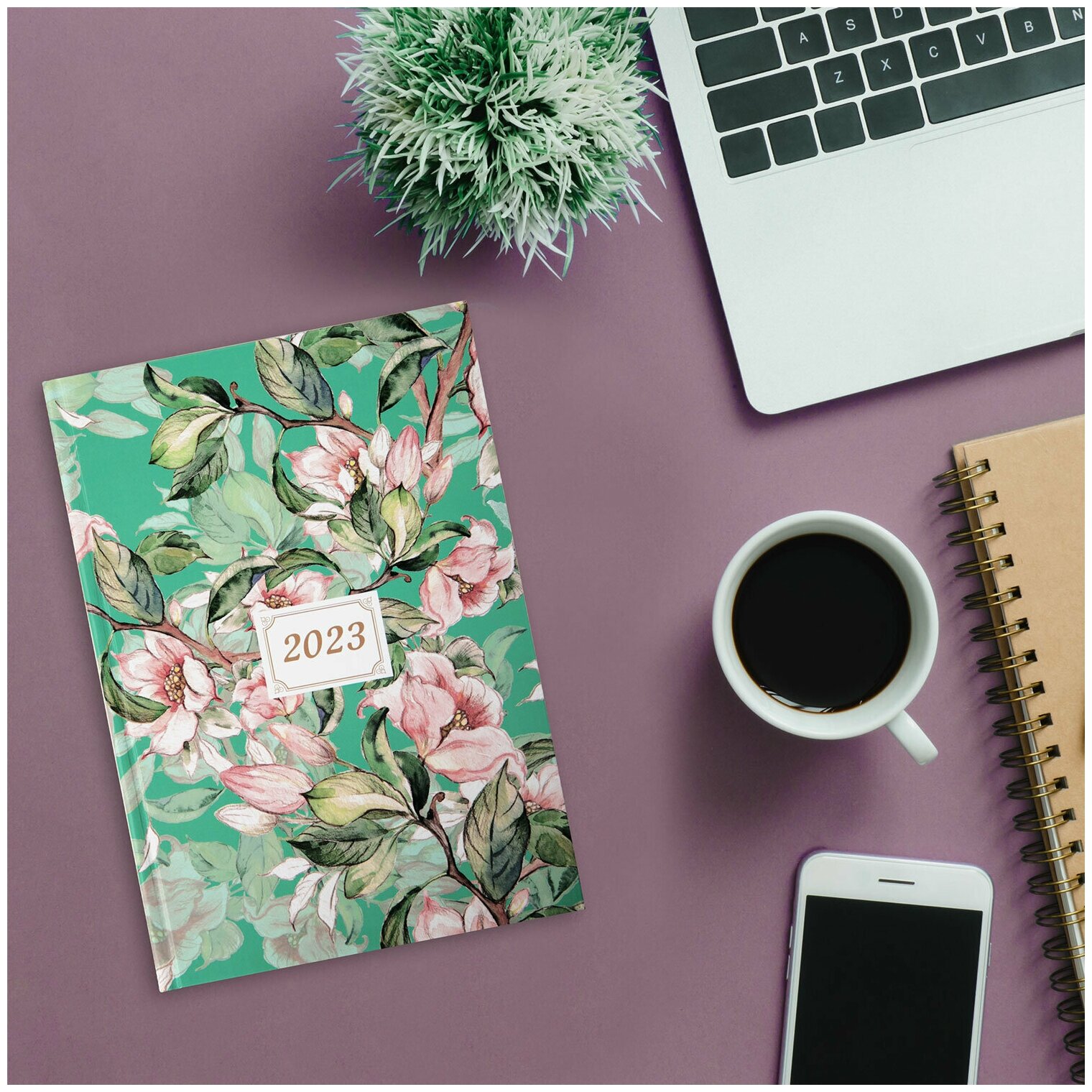 Ежедневник датированный на 2023 (145х215 мм), А5, STAFF, ламинированная обложка, "Flowers", 114192 4606224355092
