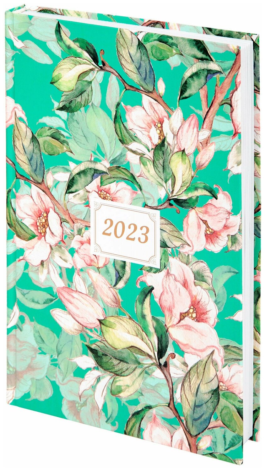 Ежедневник датированный на 2023 (145х215 мм), А5, ламинированная обложка, "Flowers", 114192