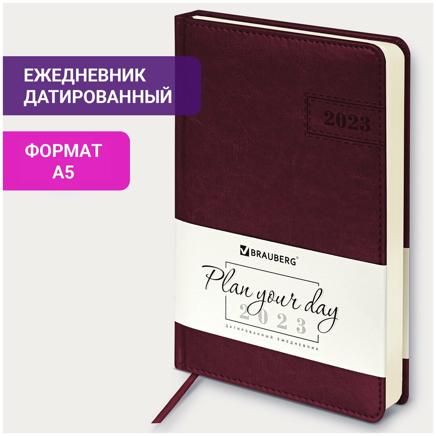 СохранитьЕжедневник-планер (планинг) / записная книжка / блокнот датированный на 2023 год формата А5 138x213мм Brauberg Imperial, под кожу, бордо интересное: