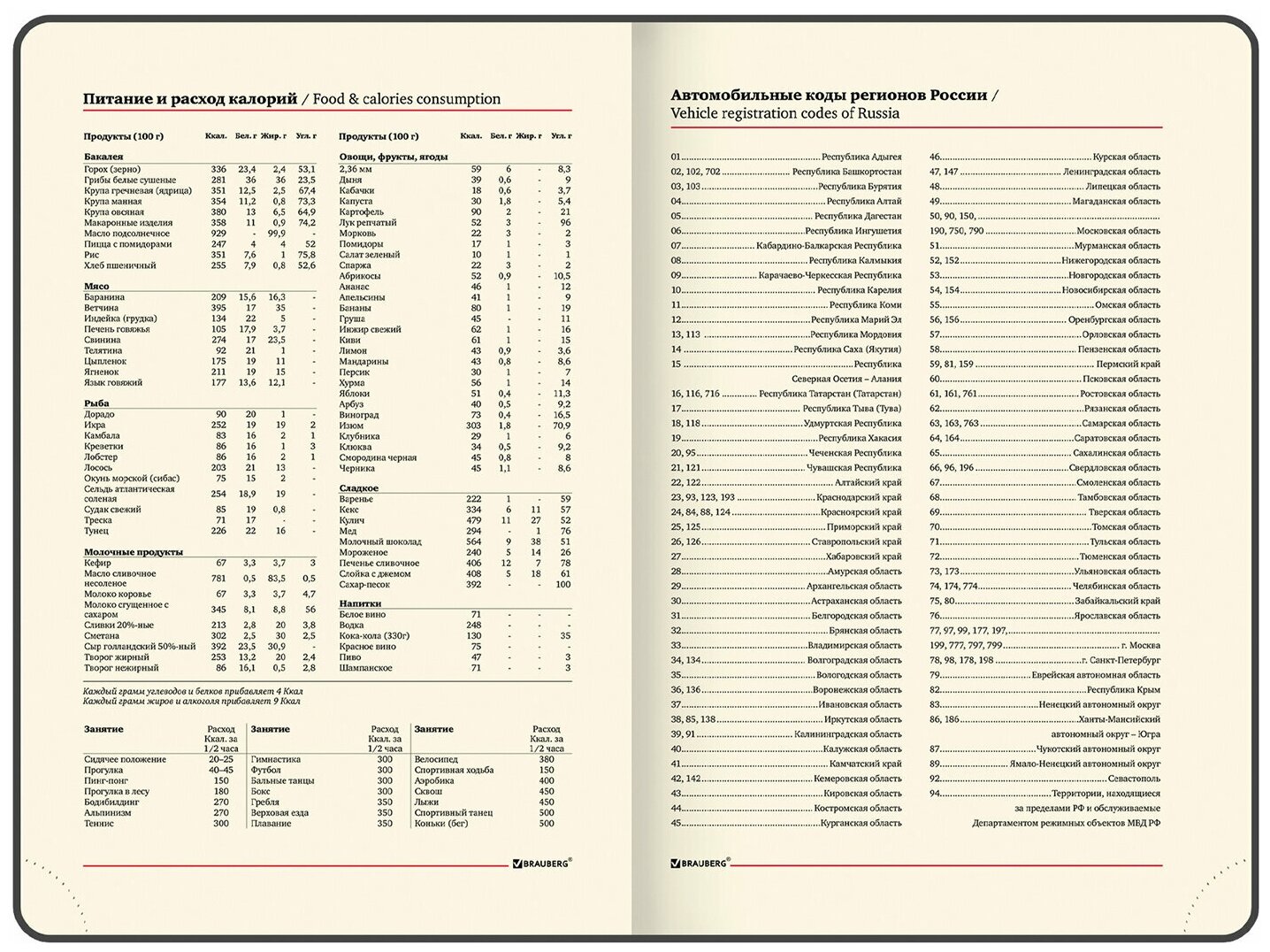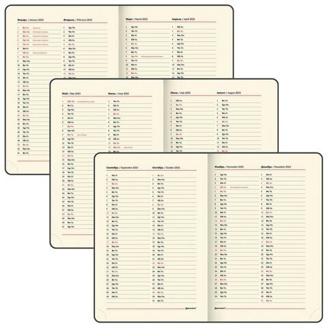 | Особенности | календарь / перфорация уголков / справочная информация / ляссе / прошивка по периметру обложки / закругленные углы |