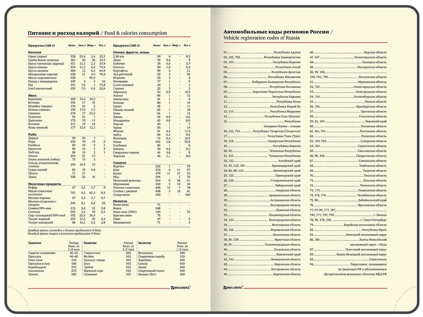| Особенности | календарь / перфорация уголков / справочная информация / ляссе / цветной обрез / закругленные углы |