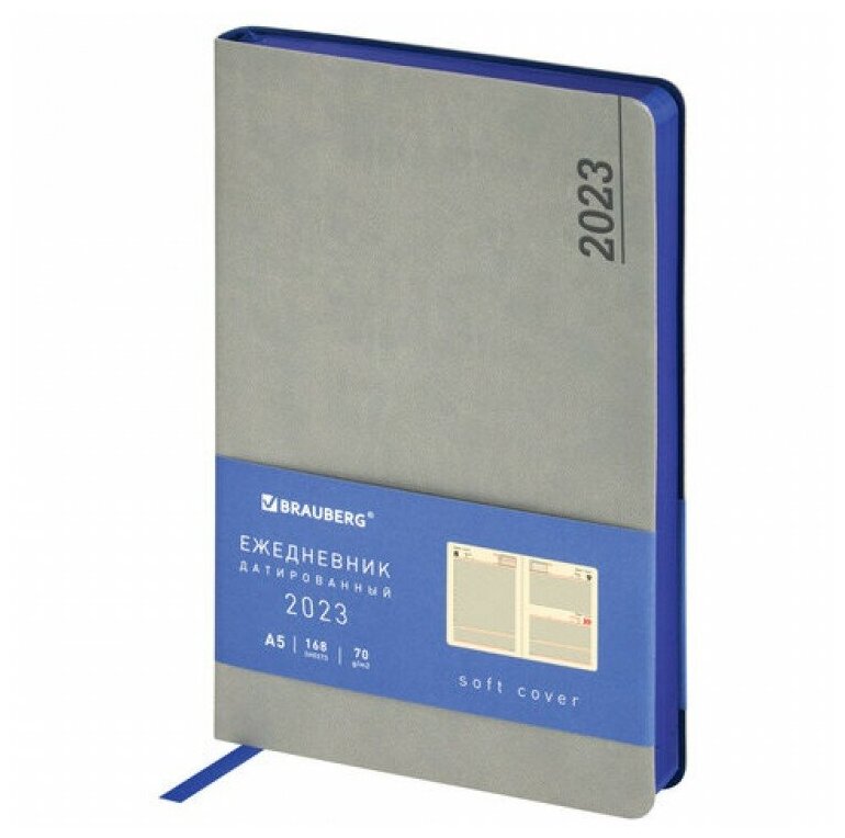 Ежедневник BRAUBERG Original датированный, A5, 168лист., кремовые страницы, синий/ серый