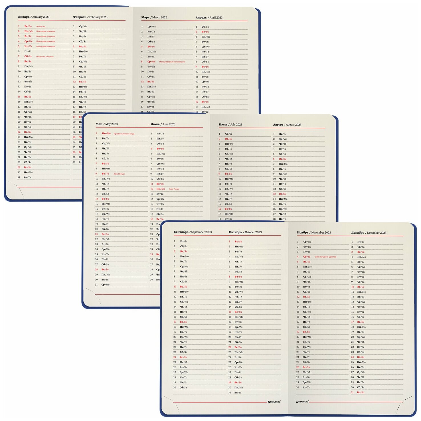 Ежедневник-планер (планинг) / записная книжка / блокнот датированный на 2023 год формата А5 (138x213 мм) Brauberg Metropolis Mix, под кожу, голубой