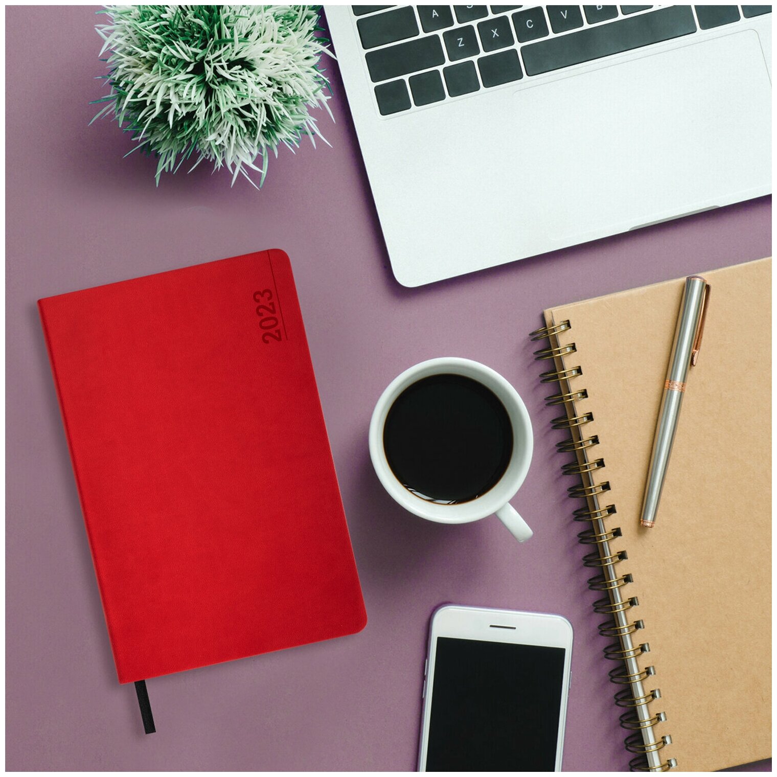 Ежедневник-планер (планинг) / записная книжка / блокнот датированный на 2023 год формата А5 (138x213 мм) Brauberg Metropolis Mix, под кожу, красный